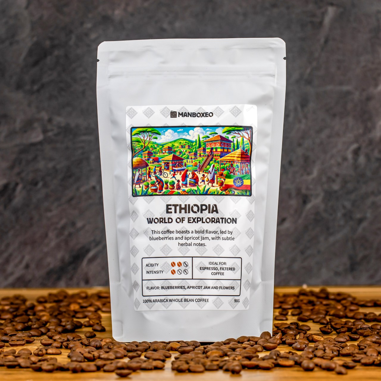 Äthiopien (90 g) – 100 % ARABICA – Vollmundiger Bohnenkaffee mit Aromen von Heidelbeeren, süßem Mus und Zitrusnoten. Der perfekte Start in den Tag!