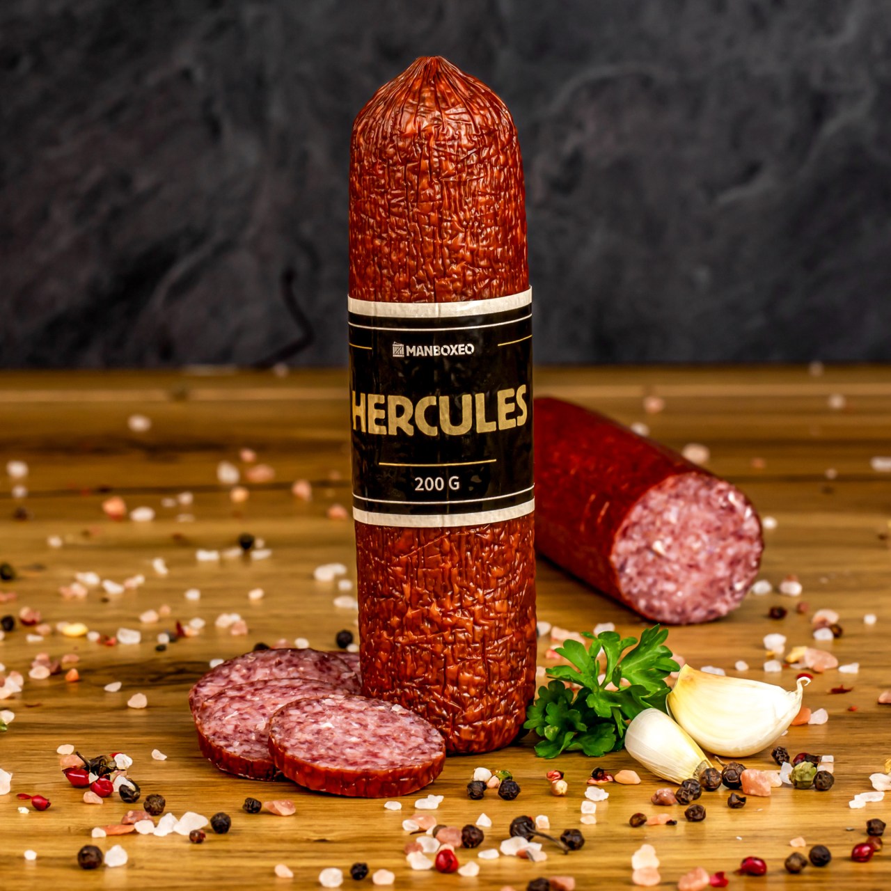 Prémiový Herkules 200g - Außergewöhnliche Salami, die Tradition und Innovation in der Herstellung verbindet. Schon beim ersten Biss werden Sie von ihrer perfekten Geschmackskombination und ihrem unverwechselbaren Aroma begeistert sein. Genießen Sie diese außergewöhnliche Wurst zu Ihrem Bier.