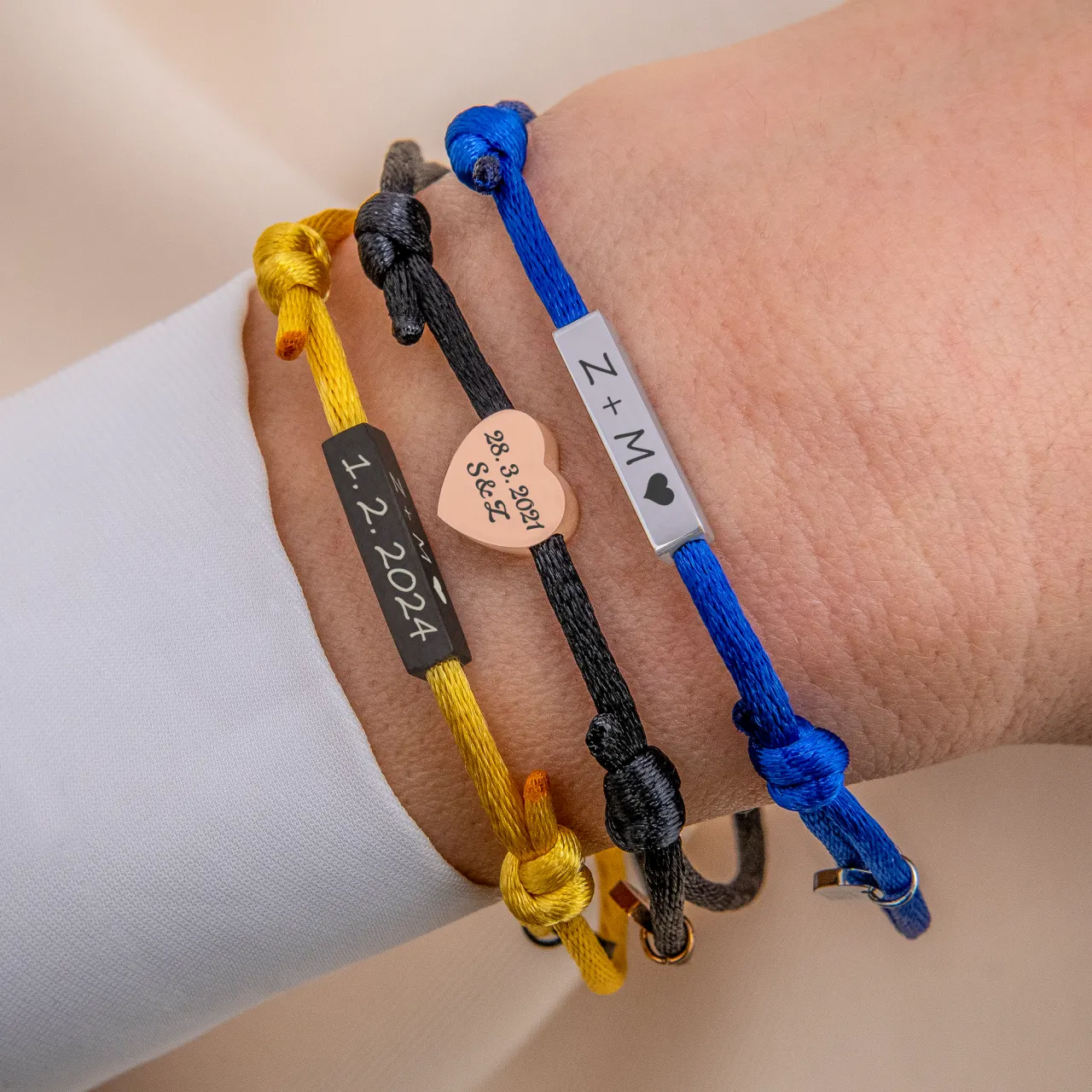 Lasse das Armband mit einem Text, Datum oder Emoji gravieren, den du dir selbst ausgedacht hast, und du kreierst ein perfektes personalisiertes Geschenk, das einfach nicht zu übertreffen ist. Du kannst das Armband nach deinen eigenen Vorstellungen gestalten. Wähle einfach den richtigen Anhänger und seine Farbe, die Farbe der Kordel und schon hast du das perfekte Geschenk für deine Liebsten.