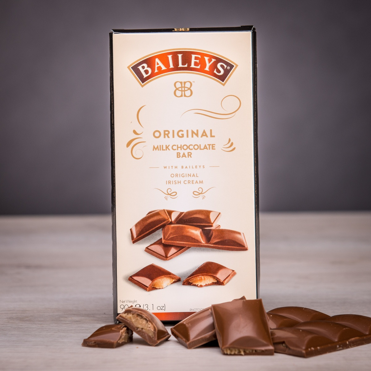 Schokolade gefüllt mit Baileys Likör 90 g – Schokolade mit Überraschung! Auf den ersten Blick klassisch, aber im Inneren erwartet Sie eine Füllung mit Baileys-Likör. Sie wird Sie mit ihrem Duft und ihrem zarten Geschmack begeistern. Möchten Sie etwas Neues erleben? Probieren Sie diese Schokolade.