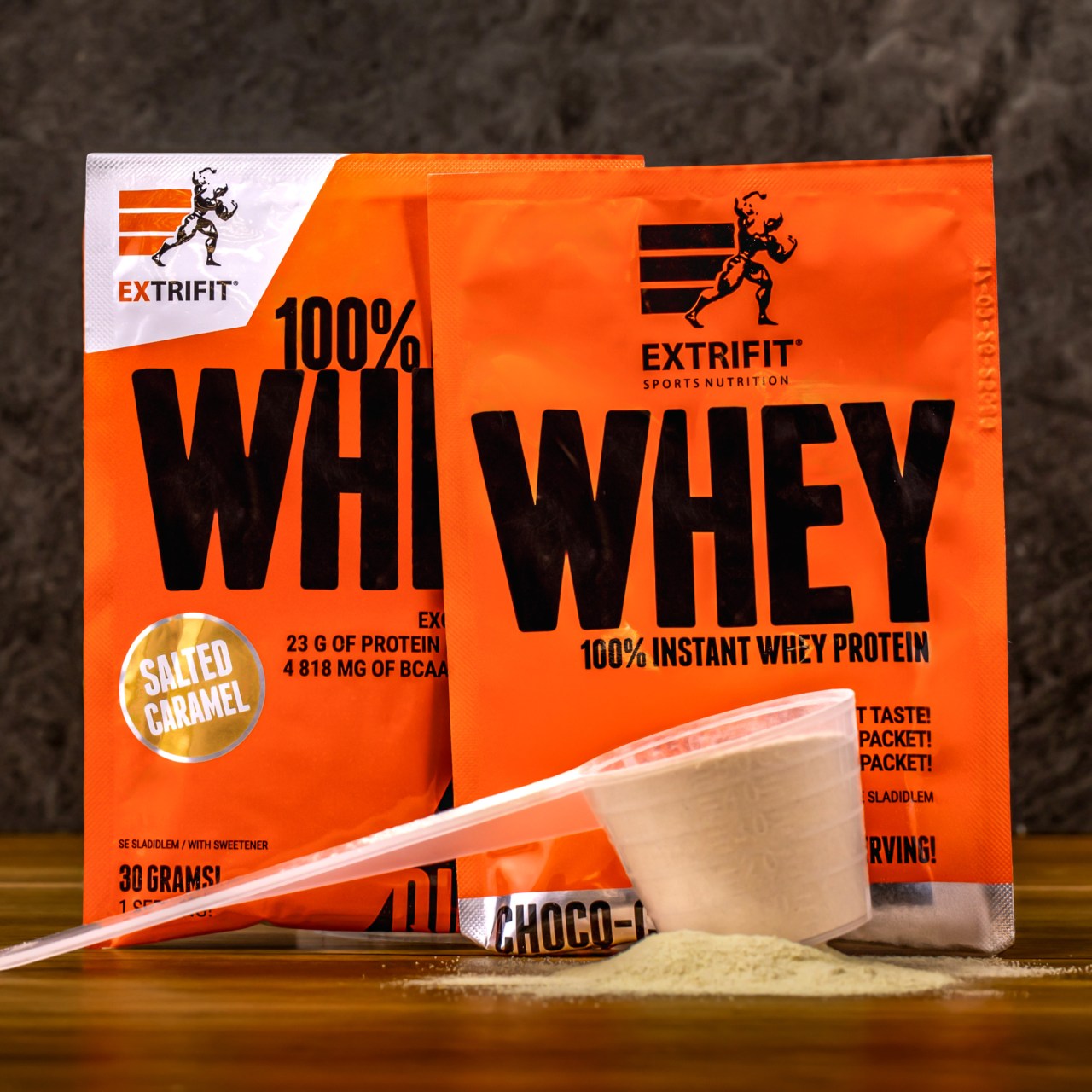 Extrifit 100 % Whey Protein 30 g – Salted Caramel – Klares Molkenprotein mit salzigkaramelliger Note, in praktischem Format – ideal für unterwegs!