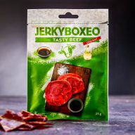Jerkyboxeo TASTY BEEF LESS SALT 25 g – Rind – Mild gesalzenes Rindfleisch mit perfekt balancierter Aromatik – ein echtes Gourmeterlebnis.
