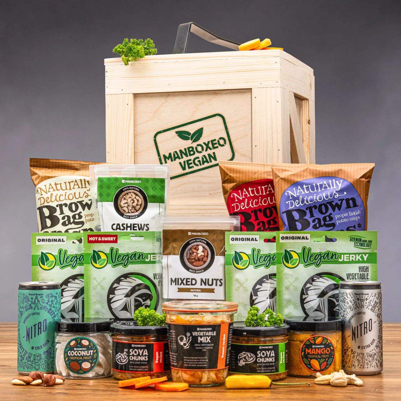 Was verbirgt sich in dieser Kiste? Eine fantastische Geschmacksexplosion für alle Veganer, die ihren Augen nicht trauen werden, wenn sie hineinschauen. 100 % veganes Jerky, Braten mal anders und viele weitere Leckereien. Jeder Veganer, dem Sie das gönnen, wird vor Genuss schmatzen.