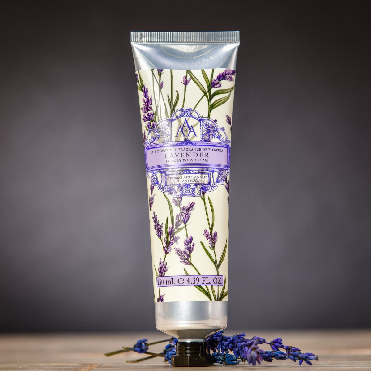 Feuchtigkeitsspendende Körpercreme mit Lavendelduft 130 ml – Diese Creme spendet Ihrer Haut intensive Feuchtigkeit, macht sie samtweich und lässt Sie dank Lavendel herrlich duften.
