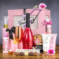 Was sollte man in einer Truhe für eine Göttin anderes erwarten als eine Fülle an Premium-Produkten? Sie sorgen nicht nur für eine angenehme Atmosphäre, sondern auch für Wohlbefinden des ganzen Körpers – außen wie innen. Ja, wir meinen damit auch ein Weinchen, das es sich lohnt zu probieren. Schenken Sie der Jubilarin Momente voller Ruhe und Entspannung, die sie sich verdient hat.