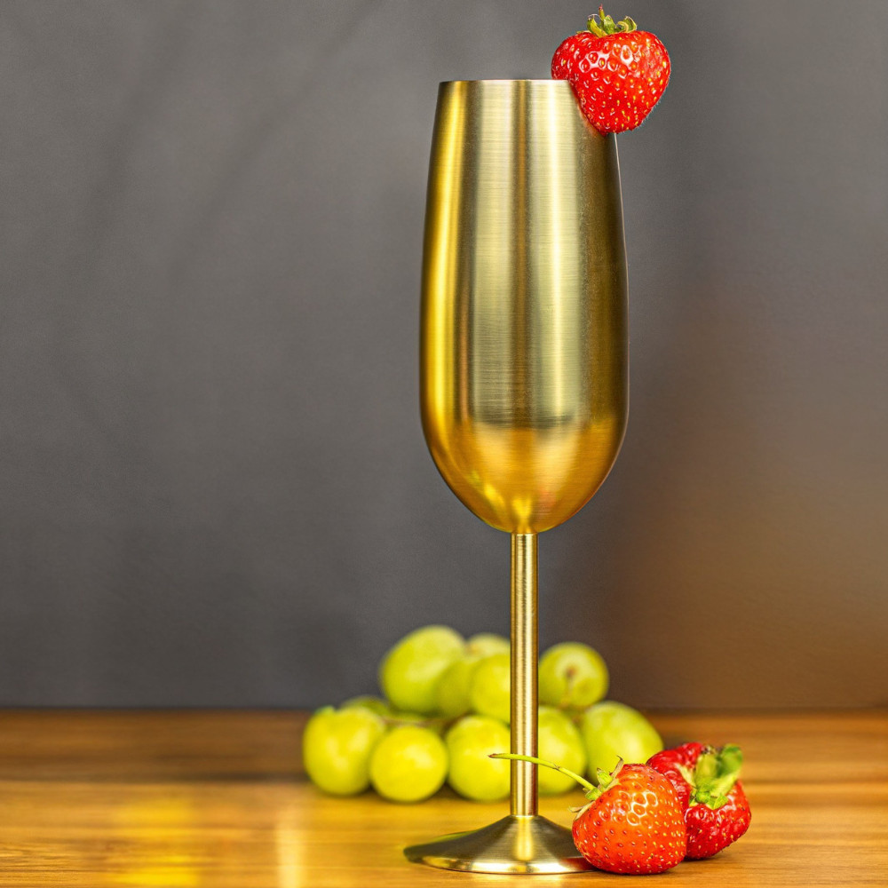 Edelstahl-Champagnerglas – gold – Stilvolles Schampusglas! Aus diesem Glas schmeckt Ihr Lieblingsgetränk noch besser.