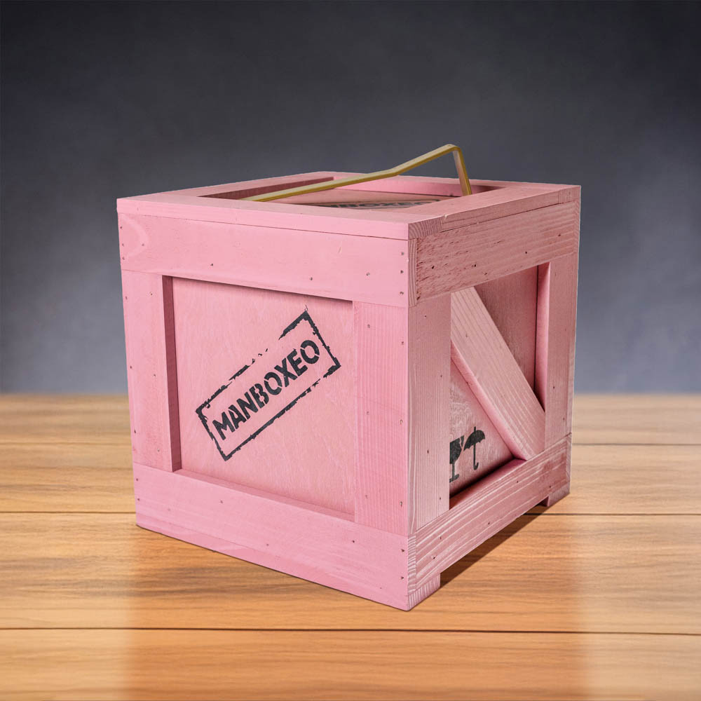 Beim Blick auf diese rosa Kiste denkt man vielleicht, dass es ein idealer Geschenk für zarte Frauen ist, aber das Gegenteil ist der Fall. Warum? In die Kiste kommt man nämlich nur auf eine einzige mögliche Weise – mit einem Brecheisen. Natürlich ist es golden, denn Stil muss man immer bewahren. Massiert der Beschenkten die Muskeln durch und lasst sie ans Werk gehen. Handschuhe zur Seite, jetzt braucht es etwas rohe Kraft und Geduld, aber es lohnt sich. Der Inhalt der Kiste ersetzt allen Schweiß und alle Tränen und garantiert unvergleichliches Vergnügen!