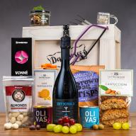 Im Inneren wartet Prosecco, den man ganz ohne schlechtes Gewissen genießen kann. Er enthält nämlich 0 g zugesetzten Zucker – dazu gibt es eine Auswahl süßer und herzhafter Köstlichkeiten für ein rundum gelungenes Genusserlebnis.