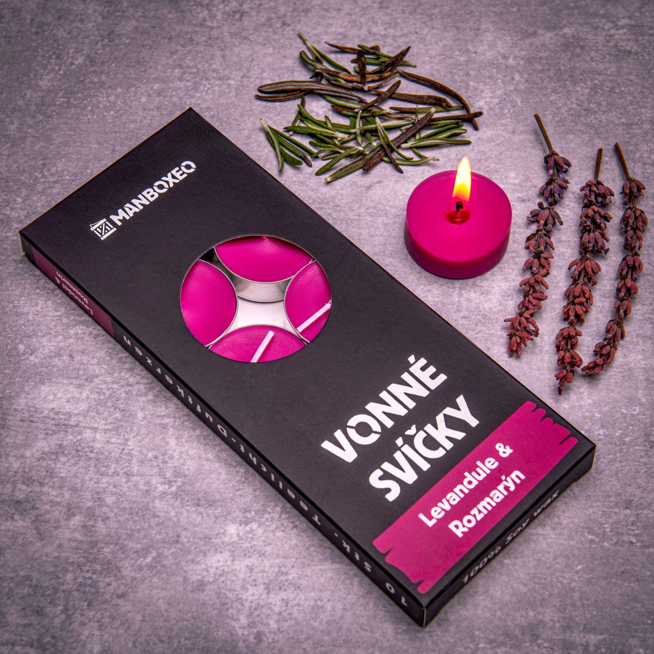 Duftkerzen in Violett-Schwarz, 10 Stück – Lavendel & Rosmarin