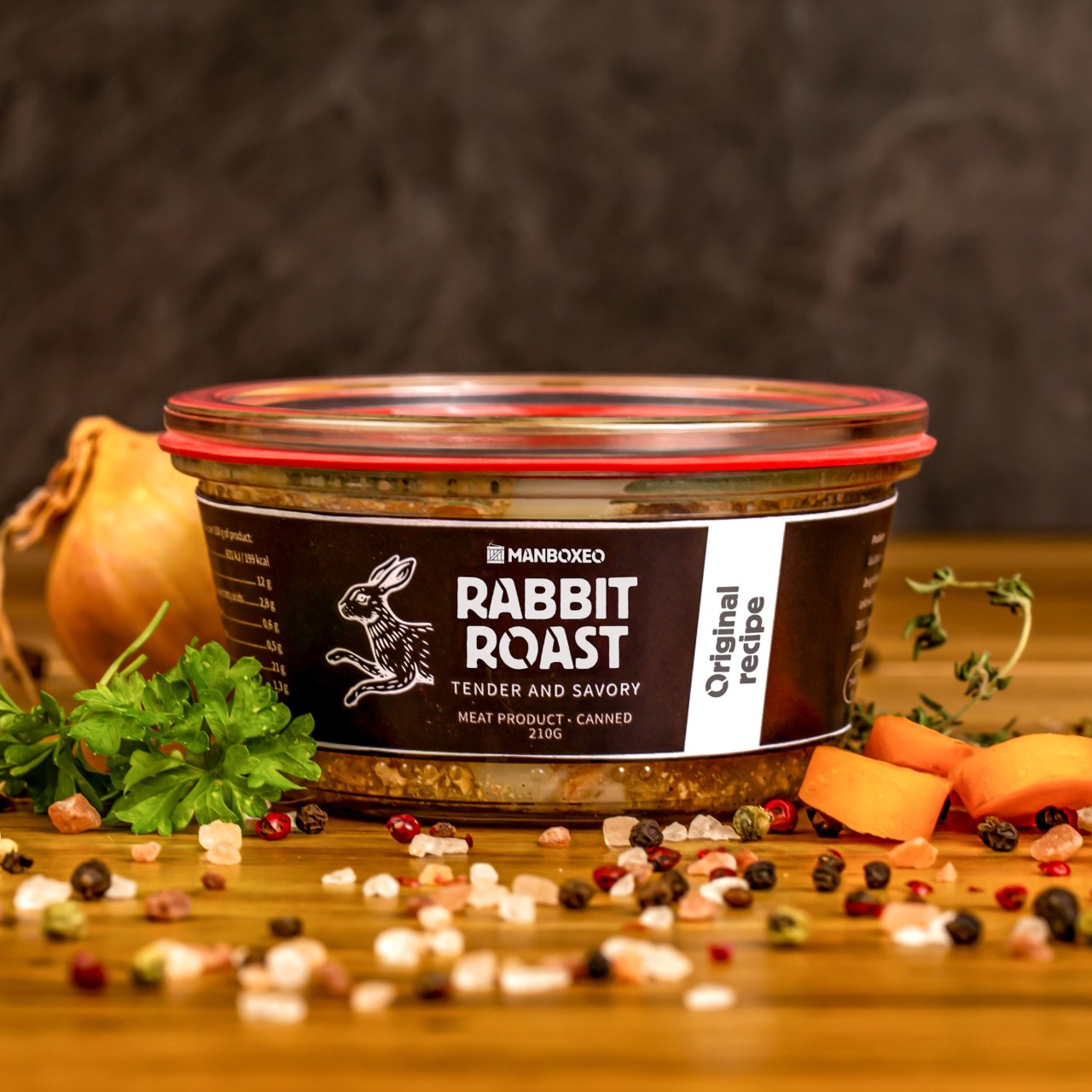 Gebratenes Kaninchen mit Schweinebraten – perfekt gewürztes Kaninchenfleisch und Schweinebauch, die in duftenden Gewürzen eingelegt sind und zusammen mit Zwiebeln und Gemüse gebacken wurden. Glutenfrei.