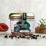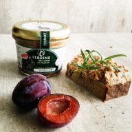 Kaninchen-Terrine mit Pflaumen - sehr leckere französische Terrine, welche größere Stückchen an Fleisch enthält und eine perfekte Kombination aus weißem Kaninchen-Fleisch und süßen Pflaumen ist.