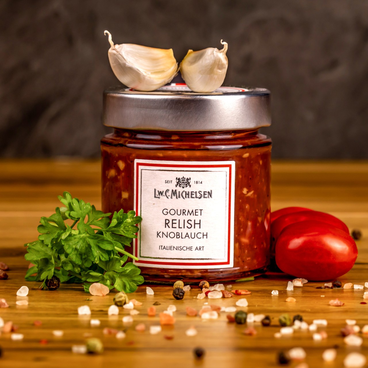 Gourmet Knoblauch-Relish mit Tomaten und Gewürzen 215 g – Die perfekte Delikatesse mit Knoblauch, Tomaten und Gewürzen, die zu fast jedem Gericht passt. Ein original italienisches Rezept, das Sie und Ihre Geschmacksknospen restlos begeistern wird.