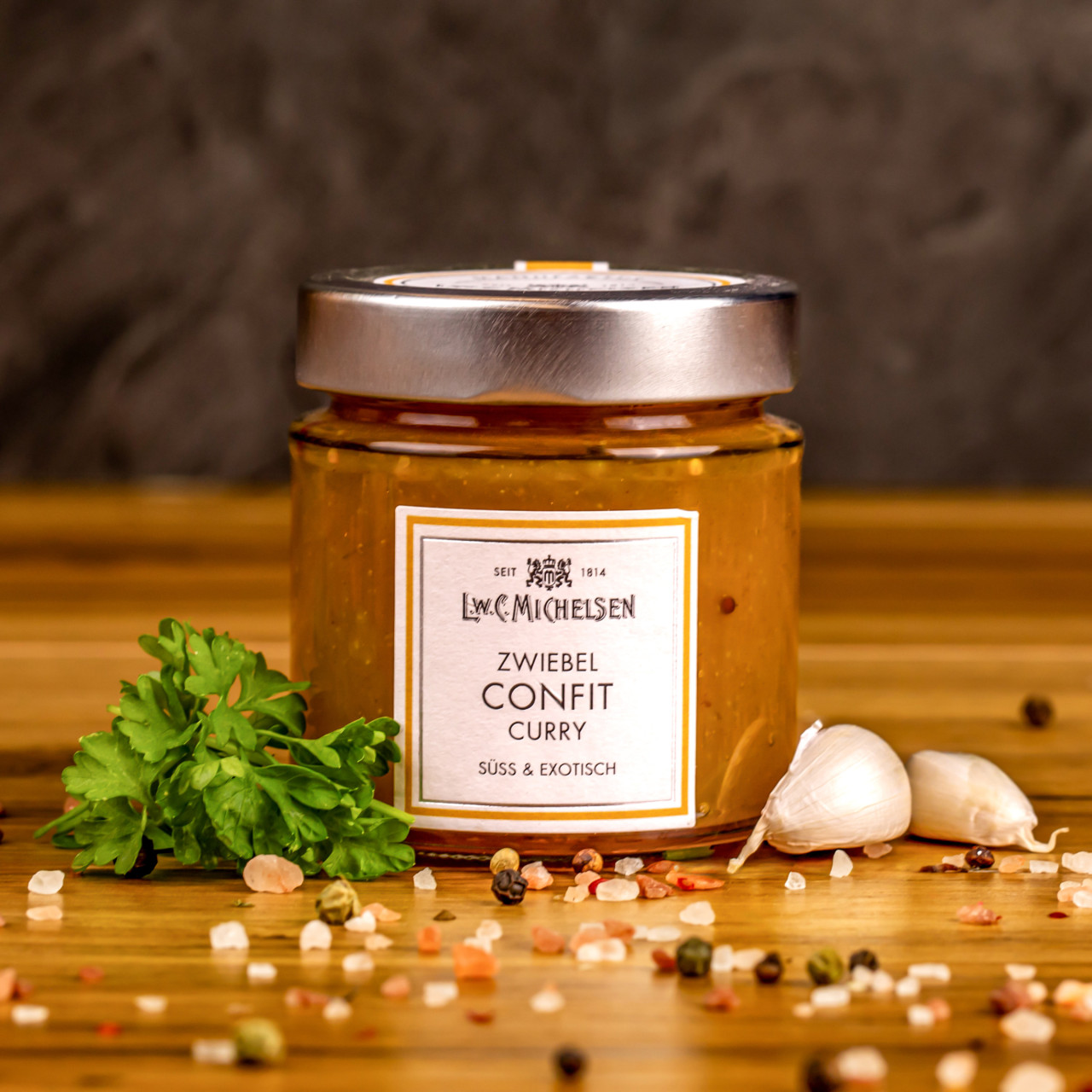 Konfitierte Zwiebeln mit Curry— Zwiebelkonfit mit süßem und exotischem Curry, das Ihre Sinne verzaubern wird. Ideal zu Fleisch, Raclette, Fondue und anderen Leckereien – wirklich universell.