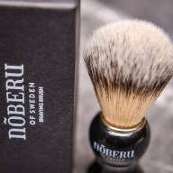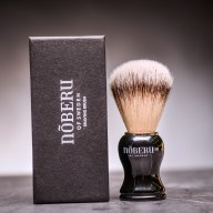 Eleganter Rasierpinsel Noberu Synthetic – Eleganter Rasierpinsel Nober mit Griff aus künstlichem Harz und synthetischen Fasern, welche Dachshaar imitieren - Geschmeidigkeit und Wasserfestigkeit. Der Knotendurchmesser beträgt 21 mm.