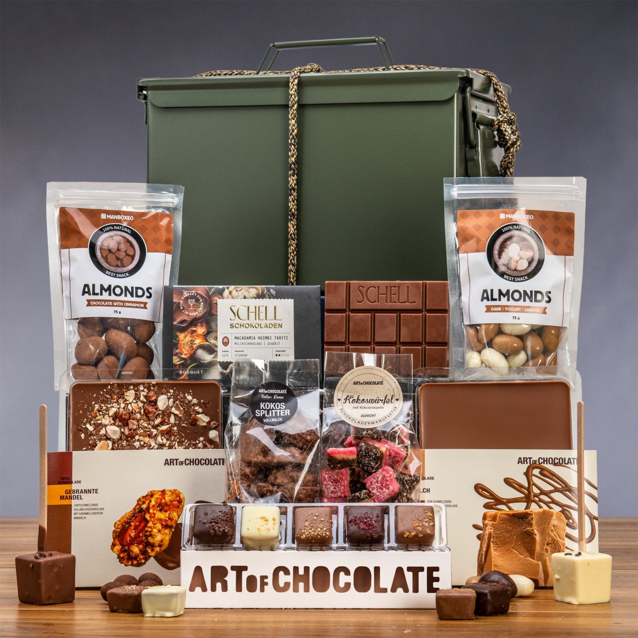 Was kommt nach einem gewonnenen Duell? Eine wohlverdiente Belohnung! In dieser schicken Metall-Lady warten Schokoladenspezialitäten, von denen Ihr Lieblings-Gourmet nicht einmal zu träumen wagte. Wir haben die beste Schokolade in verschiedensten Formen ausgewählt – Tafeln, schokolierte Nüsse, Pralinen. Der Plan ist klar: alles probieren, genüsslich schlemmen und die Geschmacks- sowie Nervenzellen verwöhnen.