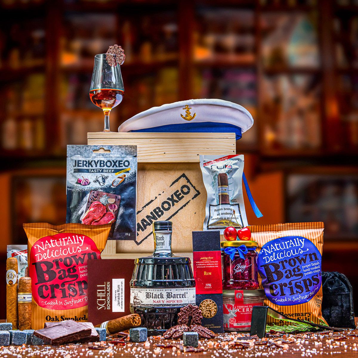 Es ist nicht notwendig, sich auf ein paar Tropfen Wasser oder ein Eiswürfel zu beschränken, um Premium-Rum zu trinken. Eine große Anzahl von Herstellern empfiehlt zum Beispiel eine Orangenscheibe oder eine andere Frucht, aber auch eine wirklich gute Schokolade. Unsere Manboxeo mit Diplomatico Rum XXL enthält folgendes Zubehör: