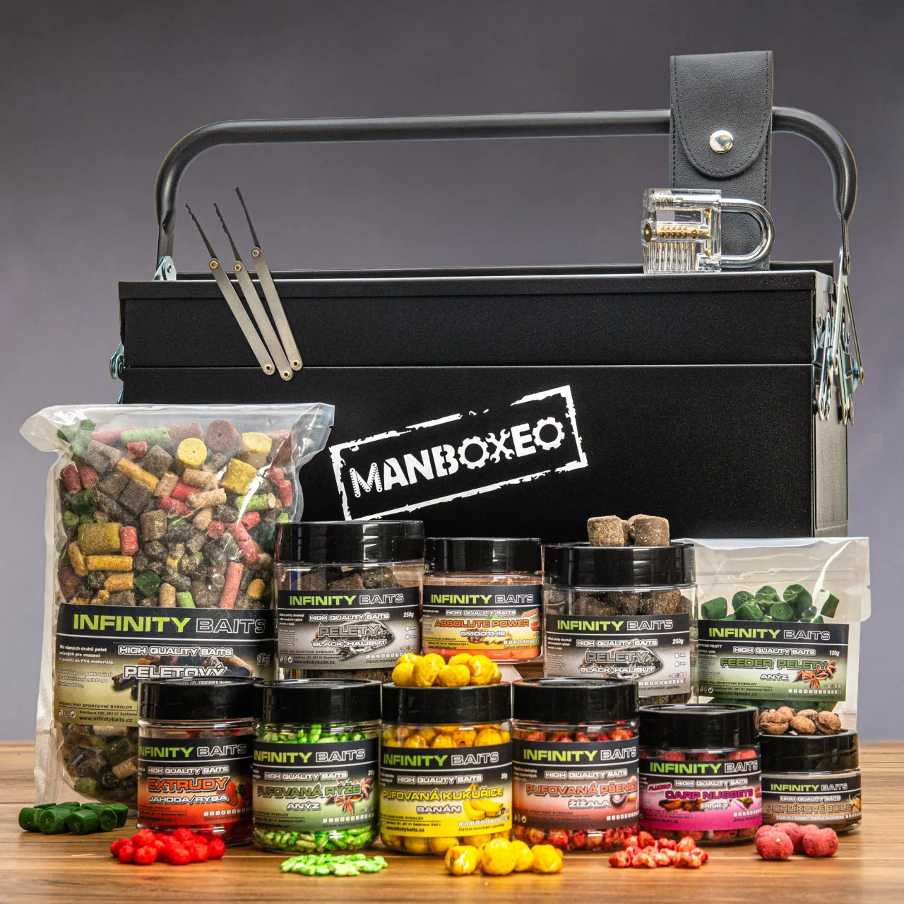 Mysleli jste si, že tato plechovka obsahuje jen nářadí? Zamyslete se znovu, dámy a pánové. Šťastný příjemce tohoto skvělého dárku uvnitř najde vše, co si rybářský nadšenec může přát. Na svém příštím rybářském výletě zaručeně zazáří – s úžasným úlovkem!