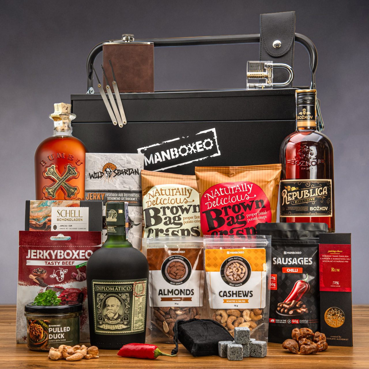 Dachtest du, in diesem Metallkoffer steckt nur Werkzeug? Falsch gedacht, meine Damen und Herren. Wer dieses Schmuckstück geschenkt bekommt, findet darin ein geniales Gourmet-Erlebnis. Neben hochwertigem Rum haben wir praktische Extras beigelegt, die jeden Schluck noch besser machen. Natürlich fehlen auch süße und herzhafte Leckereien nicht, die die Aromen des Rums perfekt unterstreichen. Und wie genießt man den Inhalt am besten? In guter Gesellschaft!