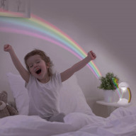 Sie müssen nicht mehr auf günstige Witterungsbedingungen warten, um einen wunderschönen bunten Regenbogen zu sehen. Der LED-Projektor mit seinem originellen Design wird hauptsächlich zur Dekoration des Kinderzimmers verwendet, ist aber auch als Nachtlicht sehr nützlich. Wenn Sie den Knopf an der Wand drücken, erzeugt er einen beeindruckenden Regenbogen, der nach 20 Minuten langsam verschwindet und die Lampe schaltet sich ab. Hilft Kindern beim Einschlafen.